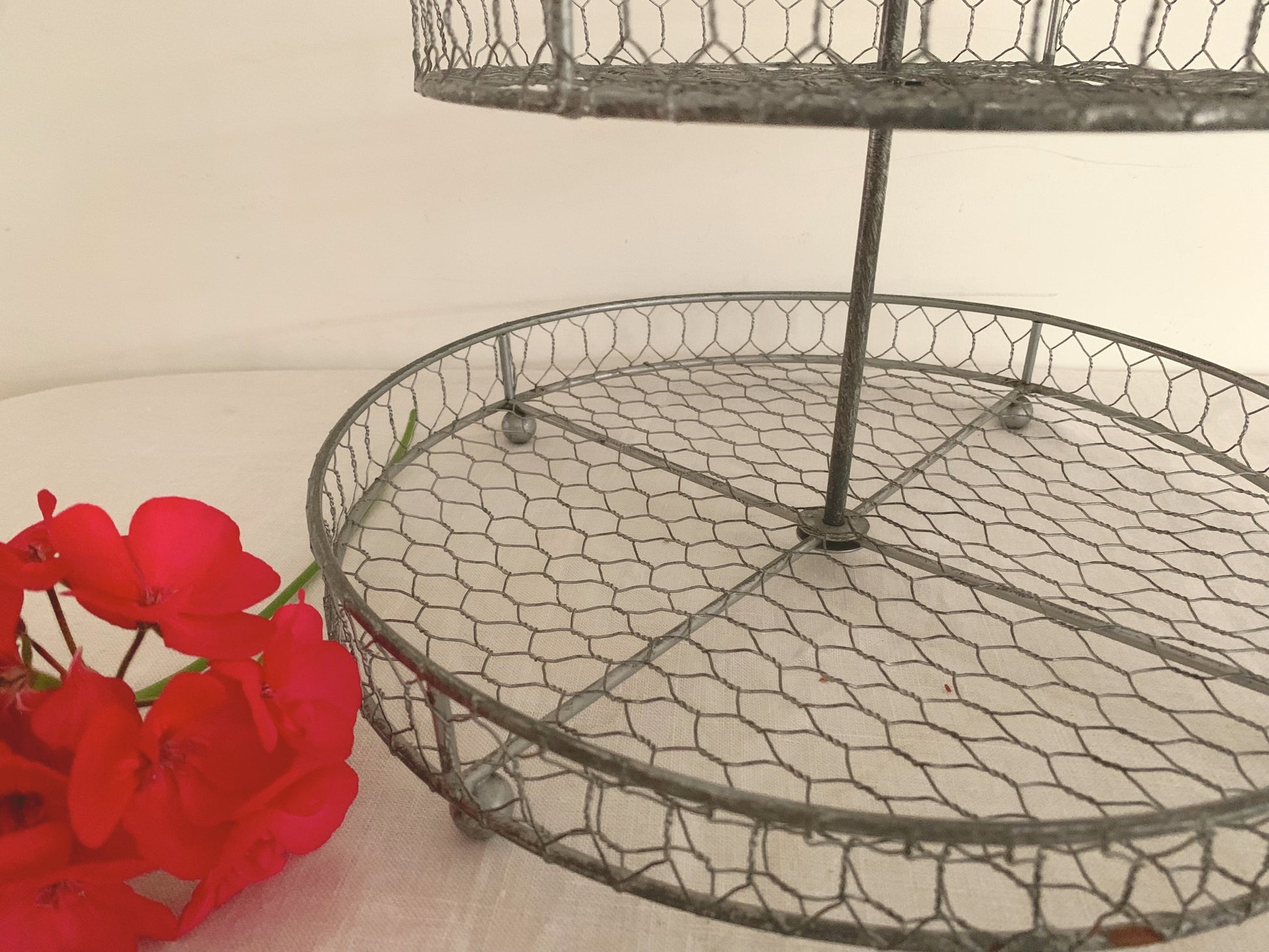 This vintage stand is rustically elegant. It's perfect for baked goods on a farmhouse counter. Serve, display, entertain, decorate...this wire stand does it all.