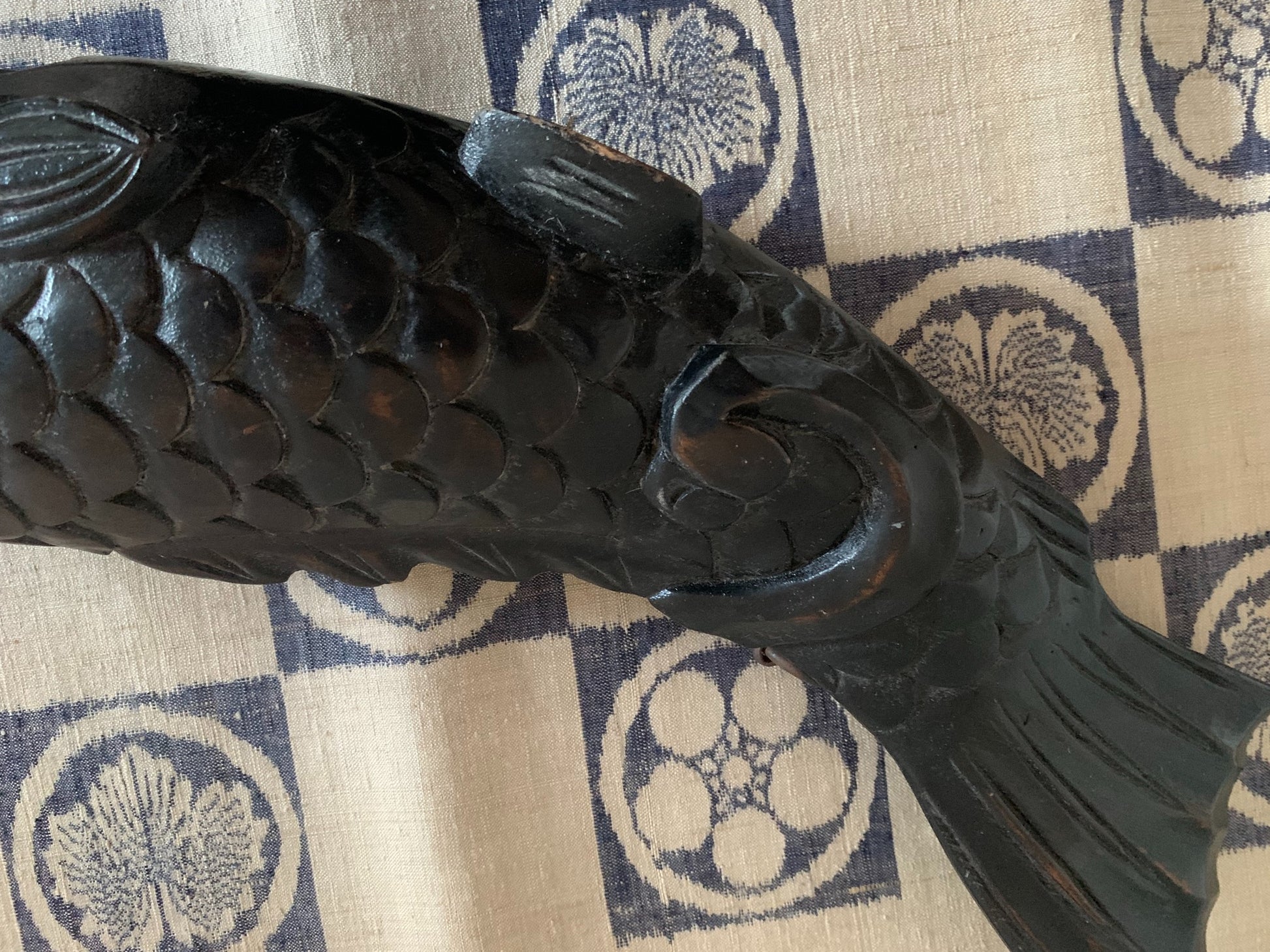 Antique Japanese Wooden Koi Fish, Jizai Kagi Hearth Hook